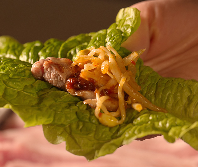 人気の〝サムギョプサル〟には、中津川のブランド豚「栗旨豚」を使用。地元中津川の栗を混ぜた飼料で育てられており、やわらかくジューシーな肉質と、甘くあっさりとした脂身が特徴です。
